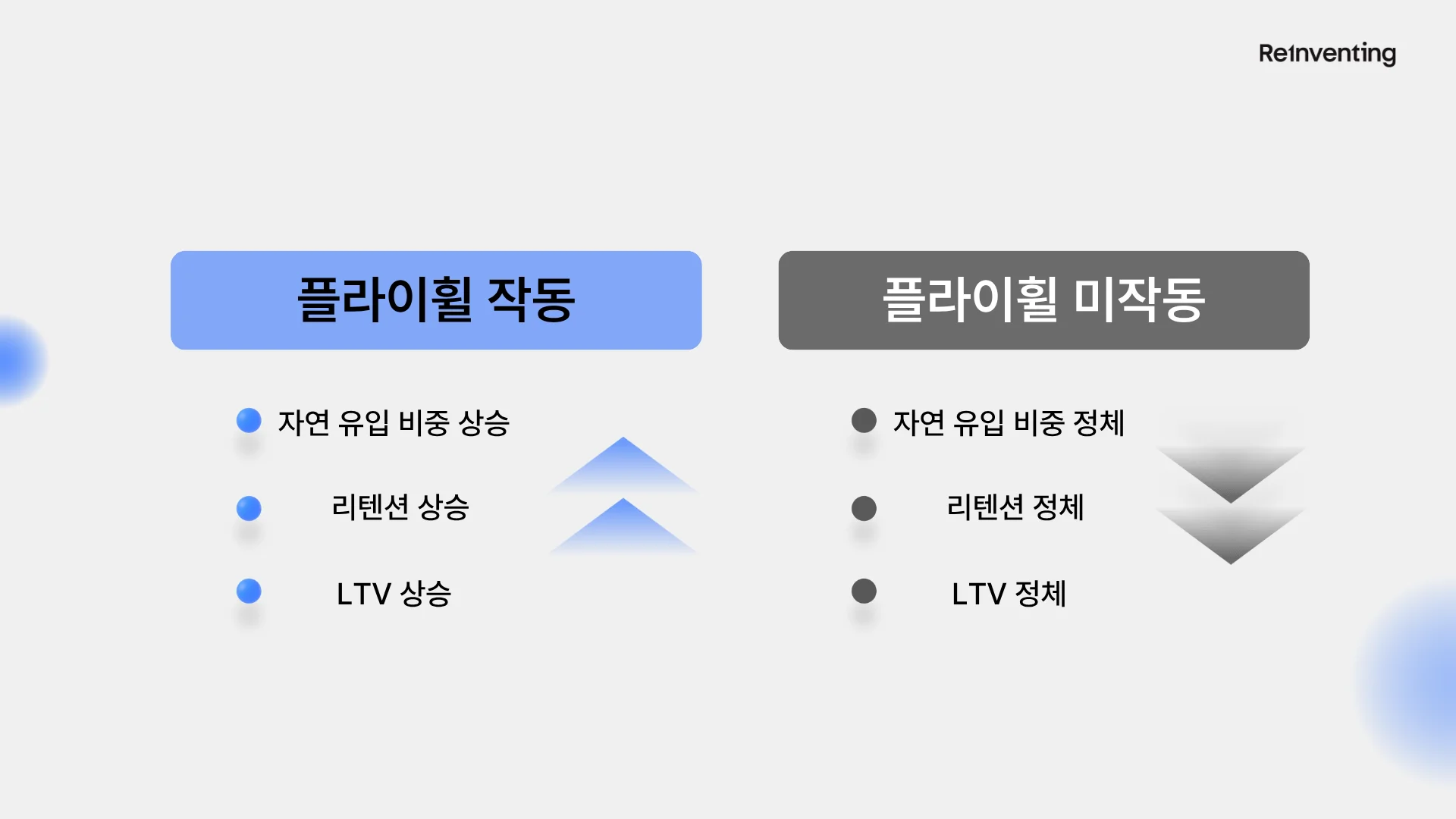 경험이 만드는 지속 성장 구조로 전환된다. 즉, 플라이휠의 핵심은 빠르게 도는 것보다 멈추지 않는 흐름을 만드는 것이다